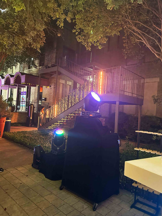 Four EB1s and two Outerbots Wash 340 provided beams and color effects that lit surrounding trees and added movement to the outdoor space. Four Toad Hybrid LED 400 flanked the “Hollywood” sign, projecting powerful beams that reached nearby buildings, while six Teclights BVW150 illuminated the photo area in front of the sign, ensuring guests stayed perfectly lit well into the night. The setup was completed with the support of sixteen Light Trusses, thirty Color Pac 150Ns, and three Total Control Radio DMXs, which offered smooth wireless control across the venue.